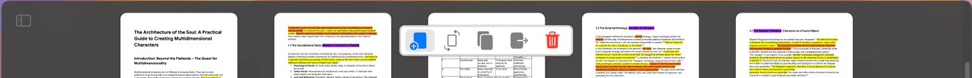 Finally, I consolidated all organizational tools—file browser, table of contents, and annotations—into a single collapsible sidebar. Users access these tools instantly when needed, then hide them completely to maximize reading space. By keeping everything in one predictable location, readers spend less time hunting for features and more time engaging with their content.